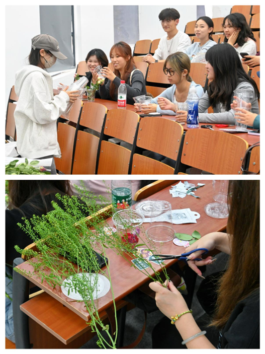 活动伊始,任嘉怡同学对活动流程及注意事项进行了详细介绍。在轻松愉快的氛围中,同学们开始了暖场小游戏,通过互动交流,彼此间的距离逐渐拉近,为接下来的插花环节奠定了良好的基础。