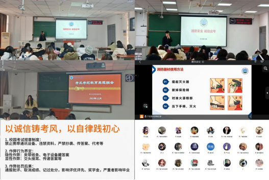12月10日前,各年级、各班级陆续召开专题班会。班会上,辅导员结合冬季火灾易发多发特点,通过典型案例分析、消防知识讲解、应急技能演示等方式,向同学们详细普及了宿舍安全用电、火灾逃生自救、消防器材使用等核心知识。在诚信考试教育环节,老师们带领员工学习了考试违纪作弊处理办法,解读了诚信考试的重要意义,引导员工树立“诚信立身,诚信立学”的价值理念,自觉抵制违纪作弊行为。班会现场,全体员工郑重签署《考试诚信承诺书》,以书面形式承诺严守考试纪律,以实际行动维护考试公平。