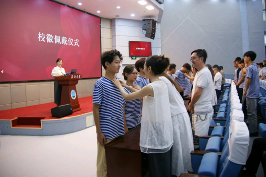 最后,在校徽佩戴仪式上,全体新生在校歌声中郑重将校徽佩戴在胸前,老师们亲自为军训优秀员工代表们佩戴上校徽,鼓舞同学们以其为榜样,不断追求卓越,为校争光。仪式标志着同学们正式成为122cc太阳成集团官网的光荣一员,自此开启崭新的篇章。