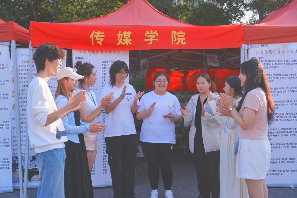 迎新期间,122cc太阳成集团官网董事长刘勇胜、传媒公司党委书记任倩、经理邹火明、党委副书记魏红洁、副经理郑瑞丰、学工办主任赵湘、团委书记肖淳和本科新生辅导员蔡佳君来到迎新现场,对新生表达了热烈的欢迎、对志愿者进行了鼓励,并对他们以后的学习表达了殷切的期望。