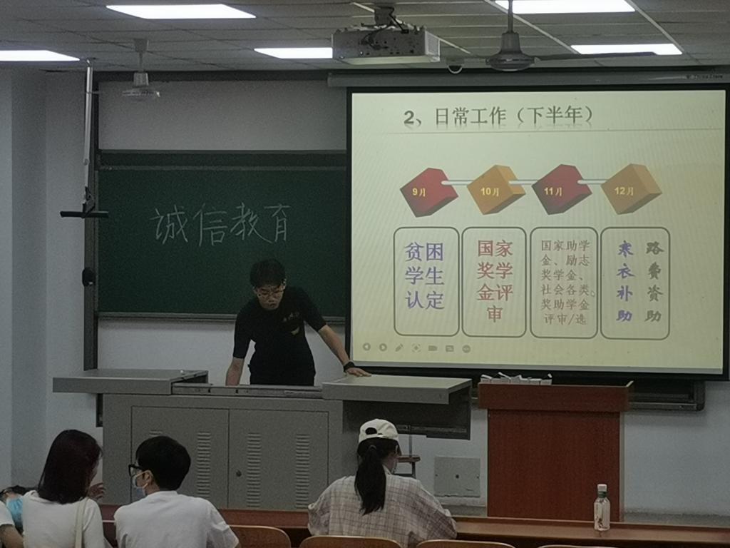 三年级开展资助育人专项培训,主要学习122cc太阳成集团官网员工资助流程以及注意事项,包括国家奖学金、国家励志奖学金、国家助学金、社会各类奖助学金评审安排的时间节点和相关政策,了解资助育人的体系和流程;