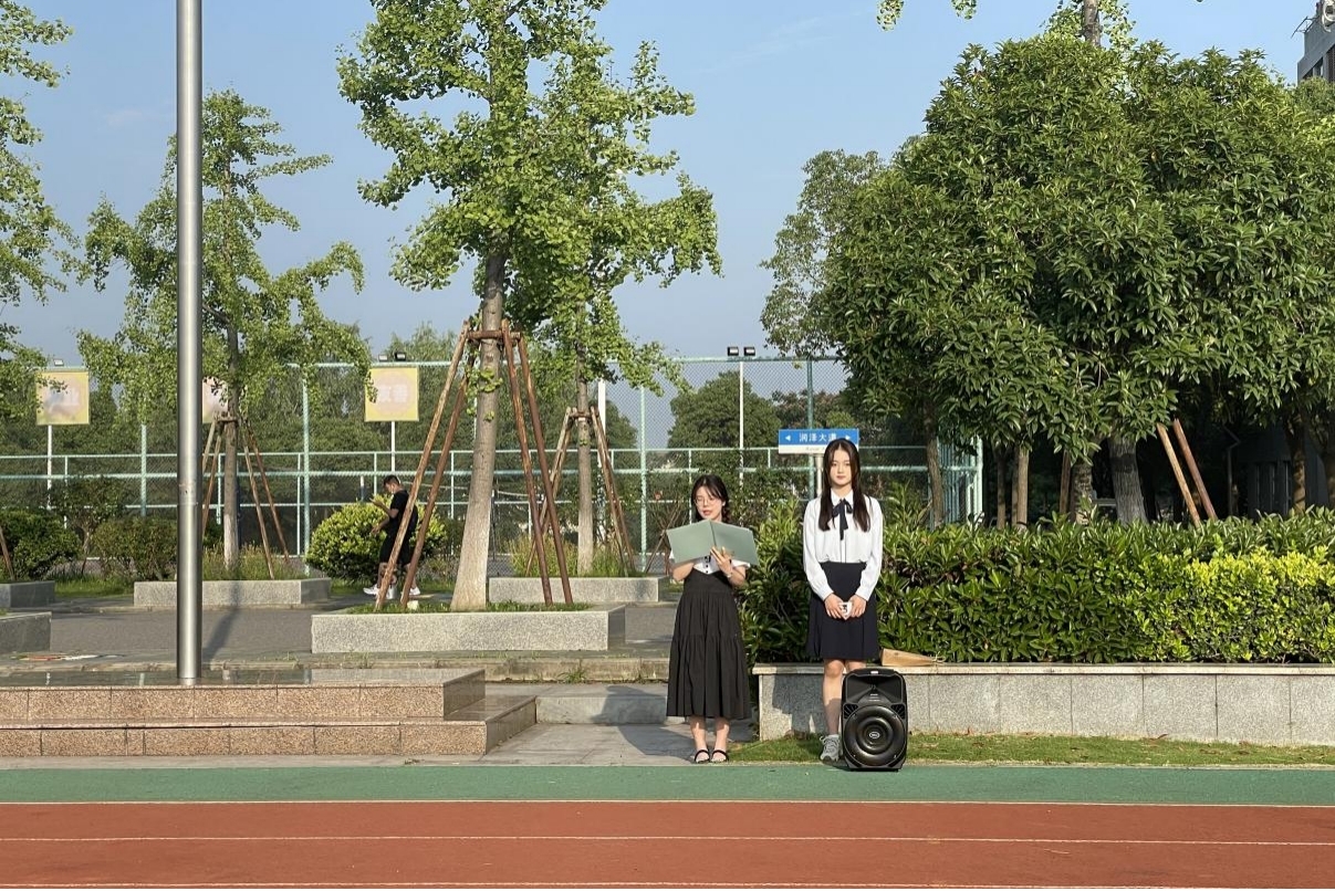 升旗仪式上,广编22001班赵紫童同学在国旗下进行讲话。她说:“我们生在红旗下,长在春风里,人民有信仰,国家有力量,目光所致皆为华夏,五星红旗皆为信仰。要记住,青春之火就是时代之光。要相信,爱国的力量就是你我的力量。把拳拳爱国心,荟萃成般殷报国之情,养浩然之气,立鸿鹄之志,成不朽之业。今年的七月一号是中国建党一百零一周年,零一是一个新的开始。愿以吾辈之青春,护卫盛世之中华。”