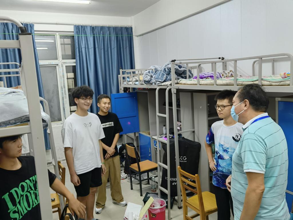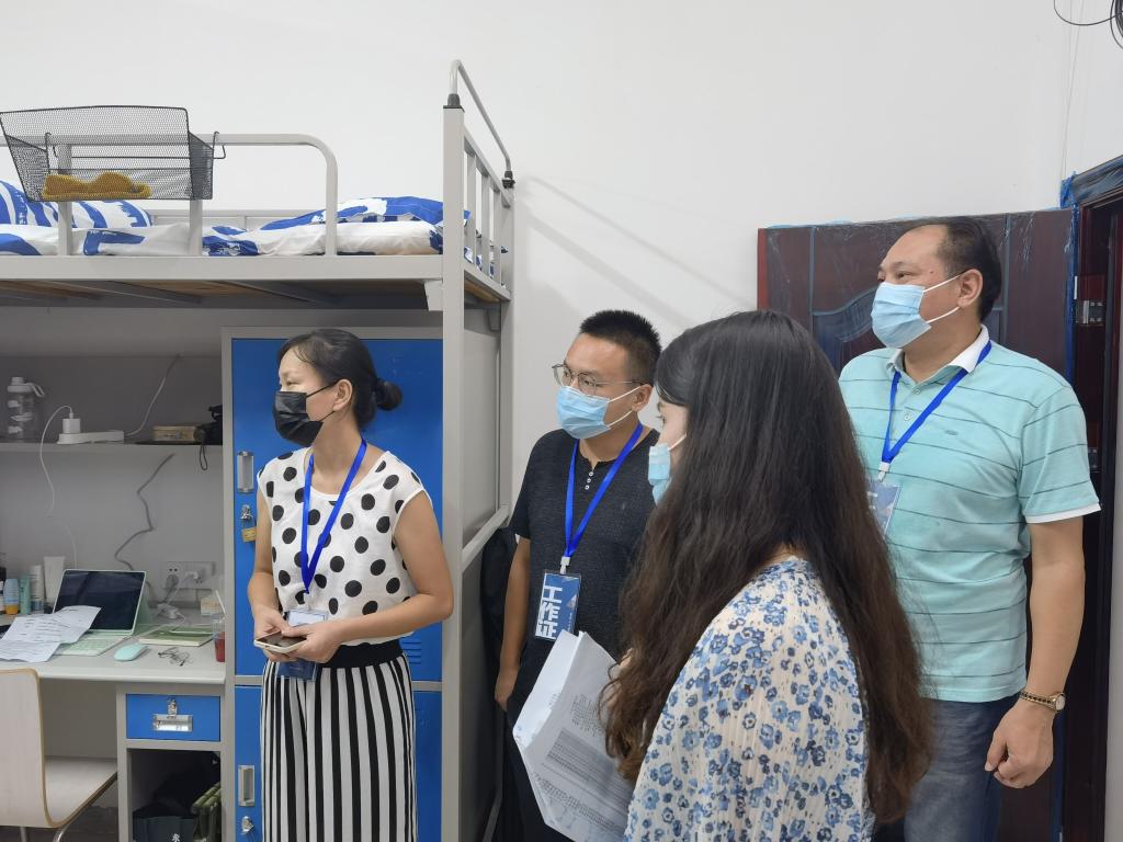 在员工宿舍,院领导与同学们亲切交谈,收集员工入住后发现的需要解决的宿舍维修问题,特别与新入住8人间宿舍的同学们作了深入交流,同学们纷纷表示装修效果和房屋空间比预想中好很多,表示会更加珍惜8位舍友之间的缘分与友谊。最后,院领导们叮嘱大家做好军训准备工作,严格遵守疫情防控有关规定,遇到困难及时向老师寻求帮助,公司一定尽力为同学们做好保障。