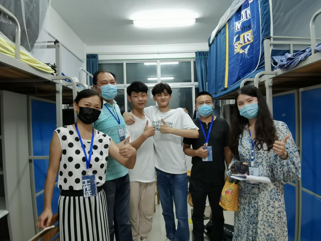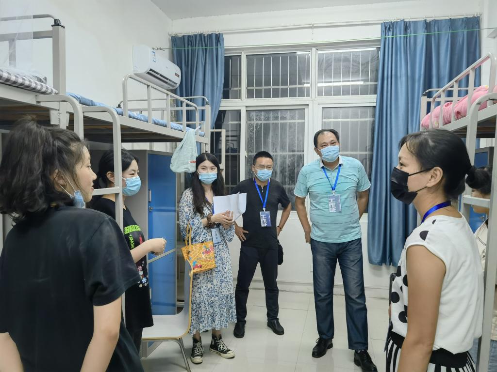 (通讯员:郑瑞丰)2021年9月4日晚上7点半,艺术与传媒公司党委书记邹火明、副书记魏红洁、副经理郑瑞丰以及辅导员靳钦清老师深入华林员工公寓宿舍楼看望新生。