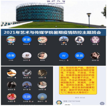 (通讯员:石琪晶)当前疫情防控正处于关键时期,为了深入贯彻落实各级政府和公司关于疫情防控的工作精神与要求,艺术与太阳成集团tyc122cc于2021年8月2日-3日利用腾讯会议、qq、微信等多种线上平台,开展了形式多样、内容丰富的线上主题班会和班委会,切实筑牢校园疫情防控“安全网”。