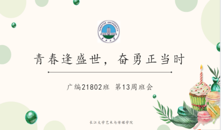 广编21802班班主任陈思琦老师以“奋斗不能驰于空想,需脚踏实地积蓄力量”为主旨,开启本周班会。陈老师以自己的求学经历和切实感悟告诉同学们要以终身学习的姿态,不断提升自己的核心竞争力,鼓励大家积蓄能量,勇于追梦。同学们彼此交流了自己在家的学习、生活状况。例如:自学视频剪辑、坚持居家健身、练习英语口语等。同学们表示,虽然疫情打乱了生活节奏,阻挡了返校的步伐,但仍要保持对知识的渴求,努力提高自身能力与专业素养,待来日乘风破浪,报效国家。