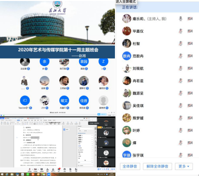 (通讯员:程轶凡)在新冠肺炎疫情形势逐渐向好发展的当下,但境外输入、无症状感染者仍呈零星地上升趋势,大家仍要绷紧疫情防控这根弦。为深入贯彻落实公司疫情防控工作部署,4月22-26日,艺术与传媒公司全体辅导员利用腾讯会议、腾讯课堂、qq、微信等多种线上平台,开展了形式多样、内容丰富的线上主题班会和班委会。