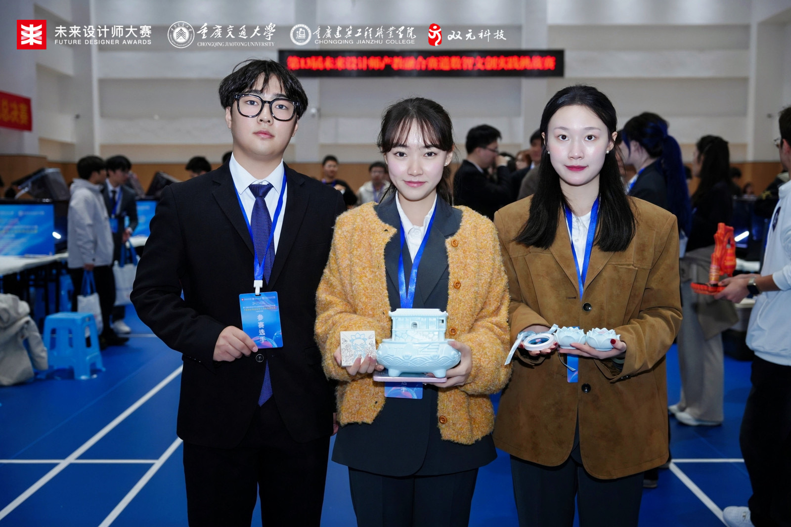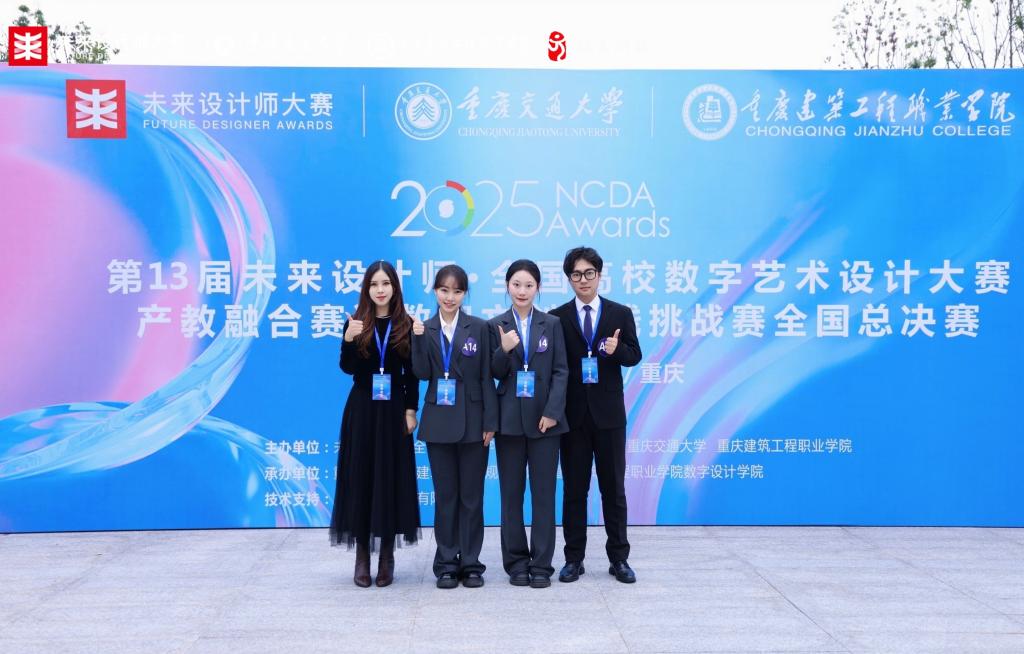 通讯员:王苒伊2025年11月15日第13届未来设计师・全国高校数字艺术设计大赛(NCDA)产教融合赛道数智文创实践挑战赛全国总决赛在重庆圆满落幕。太阳成集团tyc122cc学子吕季琳、肖勤雯、曾令龙凭借扎实的专业功底与创新的设计理念脱颖而出,最终斩获国家级二等奖、省级一等奖的优异成绩,专任教师王苒伊荣获本次大赛优秀指导老师荣誉。