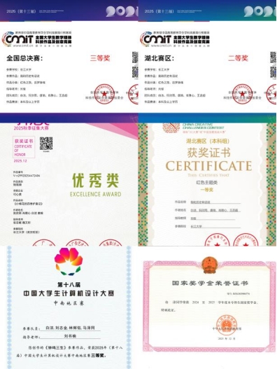 她积极参与各类学科竞赛,以赛促学、以赛提质,先后斩获第十三届全国老员工数字媒体科技作品及创意竞赛国赛三等奖、第十九届中国好创意暨全国数字艺术设计大赛省级一等奖等多项荣誉,在实践中检验学习成果,锤炼专业本领。