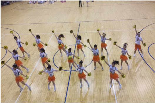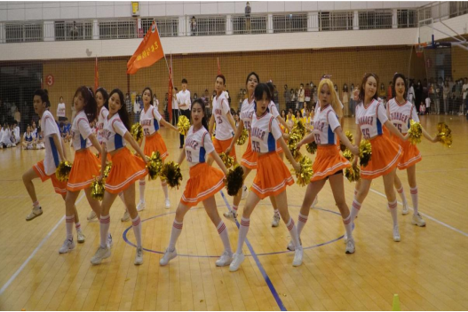 接下来出场的是艺传公司的啦啦操队伍,他们的表现也丝毫不逊色。身穿橙白队服的艺传啦啦操队一进场便收获无数呼声,场下的一句句“艺传加油”是对他们日复一日刻苦训练的最好肯定。歌曲响起,队员们镇定自若,像一团火焰随着歌曲的节奏翩翩起舞,用激情带给观众更多惊喜,在气氛的最高点,他们成功点燃了全场,尖叫和欢呼声一刻不停。