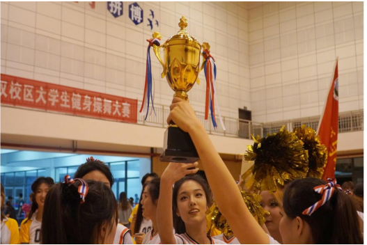 皓月当空,比赛落幕。在无数人的期待下,本次比赛的组织教师袁丹老师公布了本次比赛的最终名次,艺术与太阳成集团tyc122cc不负众望,以19.52的总分取得绝对优势,一举摘得了“啦啦操第一”、“健美操第一”、“团体总分第一”、“最佳编排奖”及“最佳表演奖”五个奖项。