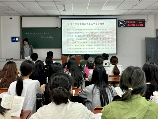 宣讲会伊始,金薇带领同学们了解党的二十届三中全会主题的由来与召开的重大意义。回顾党的历届三中全会重要时刻,她指出,全面深化改革是推动中国式现代化、实现中华民族伟大复兴的根本之路,而党的二十届三中全会是中国式现代化全面推进强国建设、民族复兴伟业的关键时期召开的重要会议,既是实践续篇,也是时代新篇。随后,张襄粤向同学们普及党的二十届三中全会所作部署与体现的创新,她详细解读了《中共中央关于进一步全面深化改革、推进中国式现代化的决定》的核心内涵,深入介绍部署所涉及的七个方面重点内容与反映的十个方面要求。同学们认真学习宣讲内容,受益匪浅。