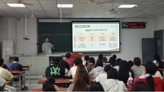 讲座伊始,涂经理指出,随着游戏市场回暖,美术岗位需求旺盛但要求逐年提高。同时通过人才数据分析,帮助员工清晰认知行业就业前景。随后,涂经理为大一新生规划了四年技能提升路径,强调要快速适应大学转变,明确职业目标。他指出,专业成绩只是基础,个人发展取决于课外70%的时间。建议通过自学设计软件、参加竞赛和实习来提升能力,并推荐了学习资源平台。特别鼓励参与技能大赛,以竞赛获奖证明综合实力,为未来就业打下坚实基础。