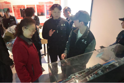 活动现场,“戎光”志愿服务队队员们认真聆听、积极互动。在参观过程中,队伍驻足于辽宁舰模型前,队长李昊结合自身在辽宁舰的服役经历,向队员们详细介绍了舰艇的构造与功能,并分享了退役后对国家安全内涵的深刻理解。他用自己的亲身经历,激励同学们珍惜和平环境,勇担时代责任。