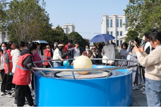 在蔡甸区气象局,工作人员带领同学们到室外零距离接触翻斗式雨量传感器等各类气象仪器,增加了同学们对气象仪器的了解。在气象天文科普馆,工作人员向同学们介绍天气预报信息采集和分析的过程,用通俗易懂的方式讲解雷电、高温、暴雨、冻雨等灾害性天气的应对和防御措施,对于同学们提出的疑问,工作人员也耐心解答。在观测室,同学们在工作人员的指导下观测气象,身临其境。