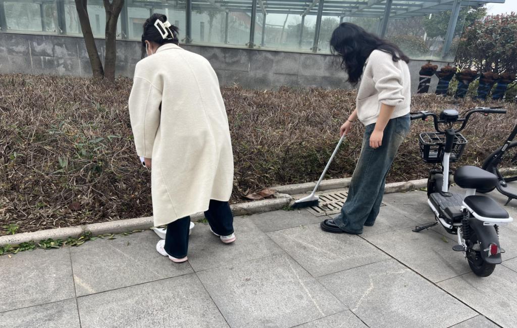 与此同时,武汉校区的清扫活动也正在如火如荼地进行中。志愿者们化身校园环卫工人,捡拾路边垃圾,清扫落叶断枝,力争每一个细小的角落也不放过,努力让校园变得更加干净、整洁。