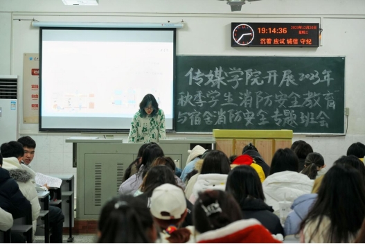 本次消防安全教育专题班会分为三个板块,分别为宿舍消防安全、宿舍用电安全与宿舍卫生。在宿舍消防安全与宿舍用电安全板块,张文熙老师与广编32302班代睿涵共同强调用电安全的重要性,并提出防范宿舍火灾的具体对策。在随后进行的宿舍卫生板块中,两位主讲人以反面例子引入,呼吁大家养成良好卫生习惯,遵守宿舍内务标准,让卫生成为一种习惯,让文明成为一种风尚。最后,全体员工共同观看消防安全专题教育微课,在场同学们均认真观看与学习该影片。