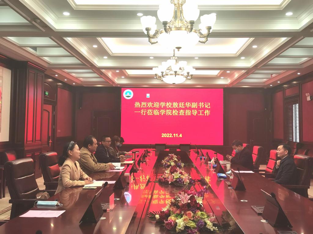 (通讯员:郑瑞丰)2022年11月4日上午9点30分,122cc太阳成集团官网党委常委、副书记敖廷华,人事处处长蒋四华一行莅临公司检查指导工作,公司党委书记邹火明、党委副书记魏红洁、副经理郑瑞丰,学工办主任赵湘、教学办主任饶艳芹、办公室主任刘武洋参与调研活动。