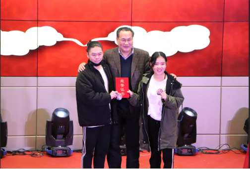 校区常务副董事长赵林为最受欢迎节目《简单,爱》颁奖。