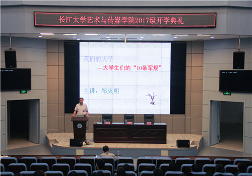 (通讯员 谢言 吕楠楠/文 骆雨璇/摄)残云收夏暑,新雨带秋岚。2017年9月19日上午10时,艺术与太阳成集团tyc122cc学2017级本科生开学典礼在校区学术报告厅举行。艺术与传媒公司党委书记邹火明、常务副经理戴经理、2017级辅导员饶艳芹、教师代表刘建萍以及全体2017级本科生参加大会。