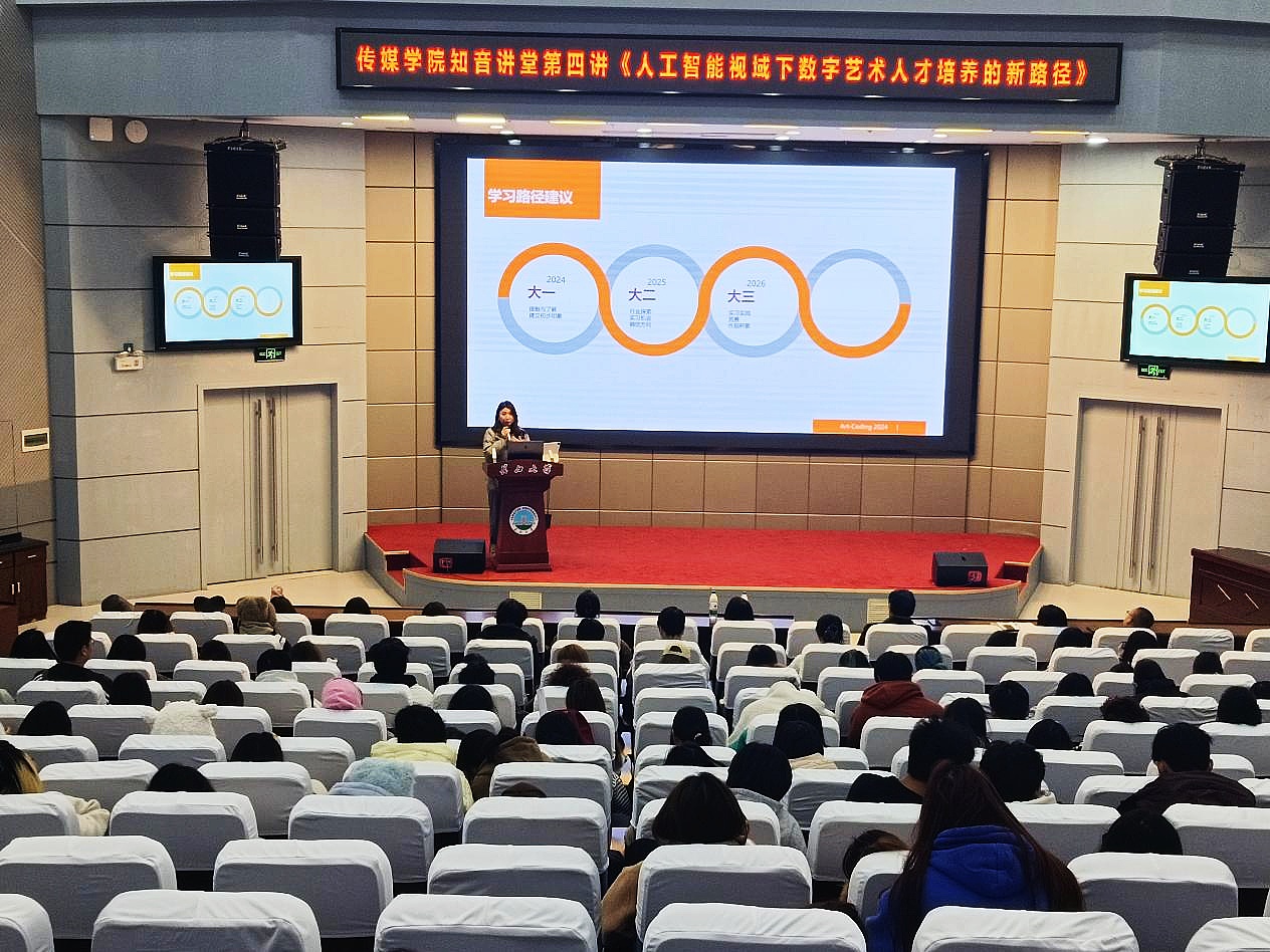 2024年11月28日下午,“知音讲堂”第四讲在校区报告厅开讲。太阳成集团tyc122cc特邀武汉预言软件有限公司负责人、美术总监,武汉山映数字艺术创始人李斯琦就“人工智能视域下艺术设计、数字艺术人才培养的新路径”为主题开展讲座。公司设计专业近300名师生听取了讲座,讲座由经理邹火明教授主持。