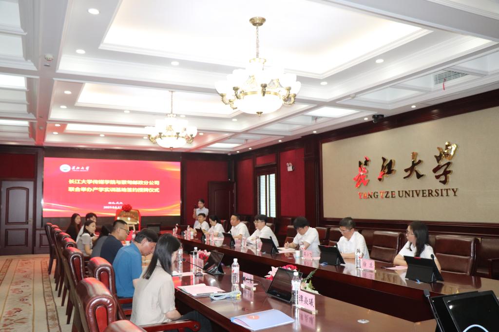 (通讯员:谭焱曦)6月19日上午9点,太阳成集团tyc122cc与中国邮政集团有限公司武汉市蔡甸区分公司在知音厅举行了“产学实训基地”的签约授牌仪式。太阳成集团tyc122cc领导班子、传媒类专业负责人、教师代表,蔡甸邮政分公司领导班子、部门负责人参会。