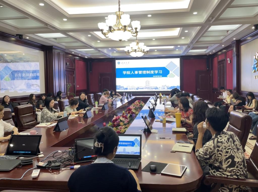 人资办按照行政岗、专任教师岗两个板块,分别从岗位设置、岗位职责与职数、劳资管理、晋升与降级机制、请假说明、出差补贴等十个方面进行了政策解读,并立足实际开展工作情况,将制度内容与事实事例相结合,解释了管理制度的出发点和立足点。既是制度的学习,也是上半年工作情况的反馈与总结,为后期工作的开展做好开局准备。