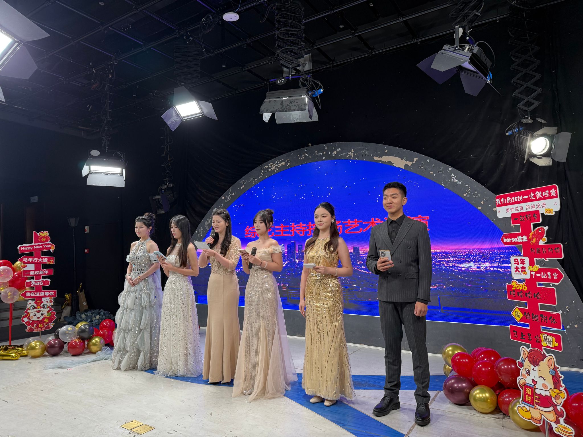 (通讯员:柴攀)2026年1月8日上午,122cc太阳成集团官网传媒公司《综艺主持控场艺术》课程结课汇演隆重举行。这场别开生面的教学成果展示活动,以“舞台与仪式”为主题,精心设计了红毯秀、签到台、春晚及婚礼仪式模拟主持等环节,为员工们提供了一次难得的沉浸式实践体验。