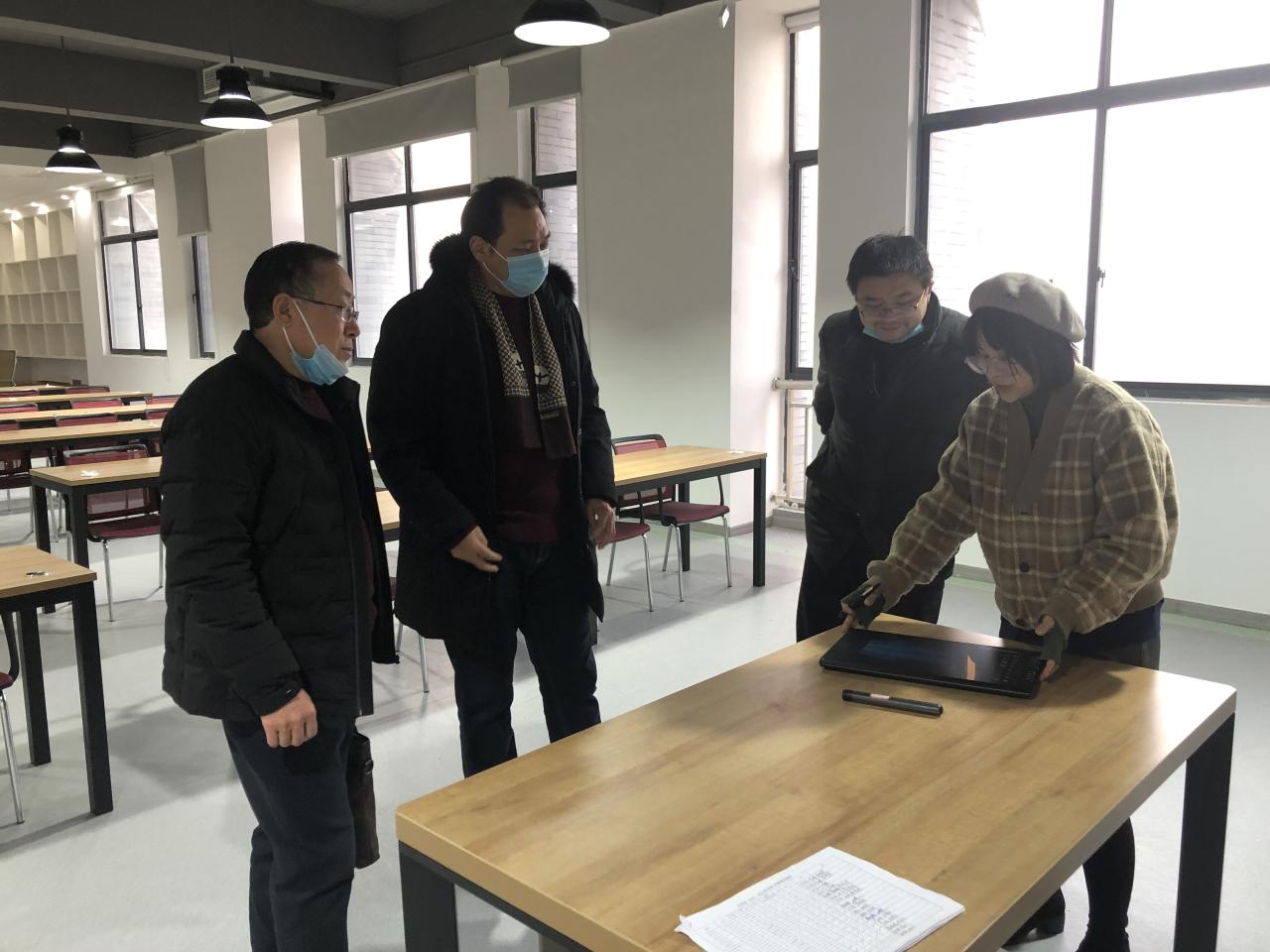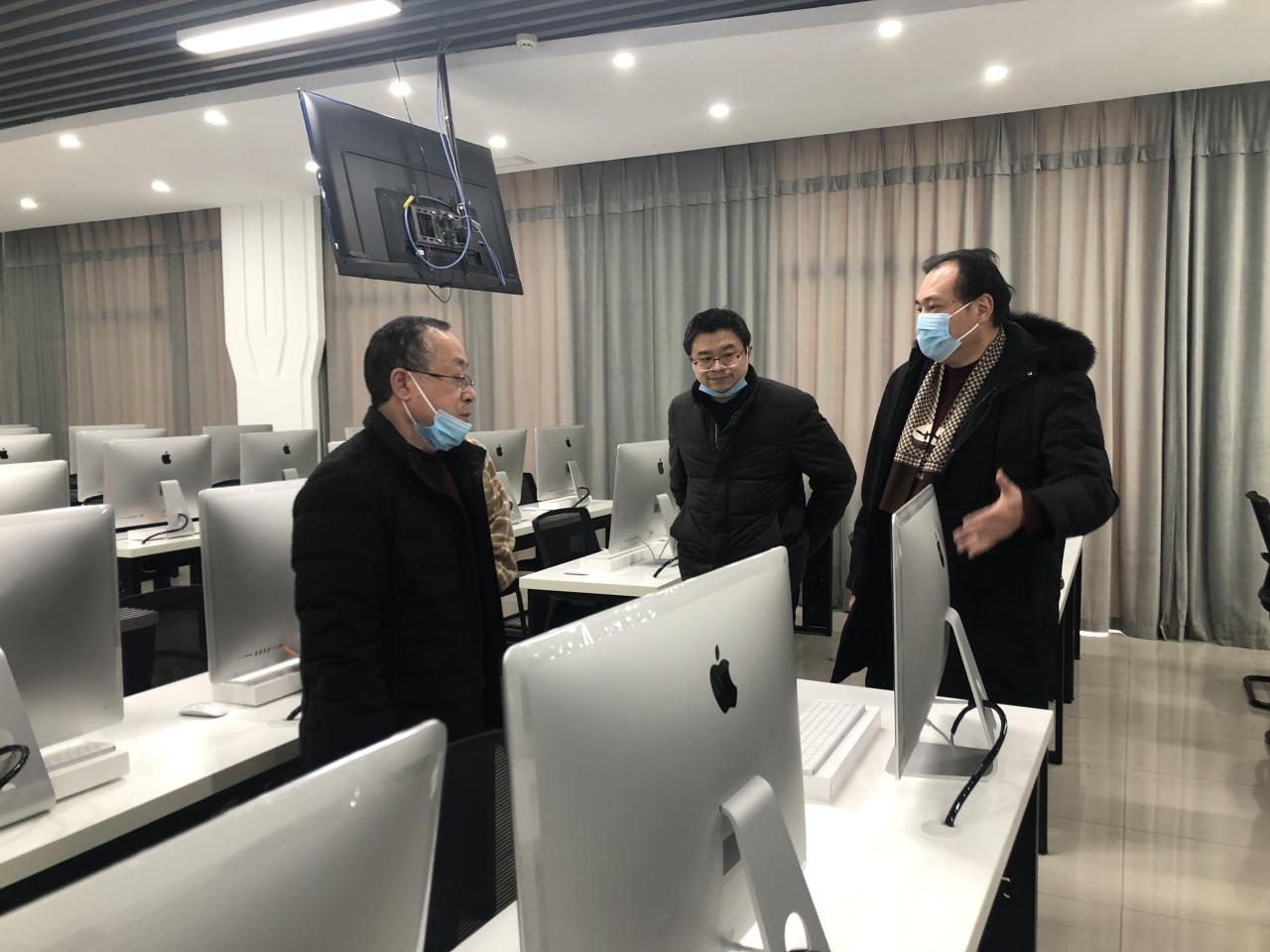 (通讯员:刘武洋)2020年12月23日下午4时,国资处何开平、胡继军等领导一行2人莅临公司检查指导实验室建设和运行工作,公司党委书记邹火明,副经理郑瑞丰,办公室主任刘武洋参加了检查指导活动,何处长就公司公共房使用相关的政策规定进行了通报,并到公司的苹果图形工作站、手绘实验室等实训室考察与指导,就公司实验室如何更好地服务“双一流”建设,以及未来的建设规划进行探讨与交流。