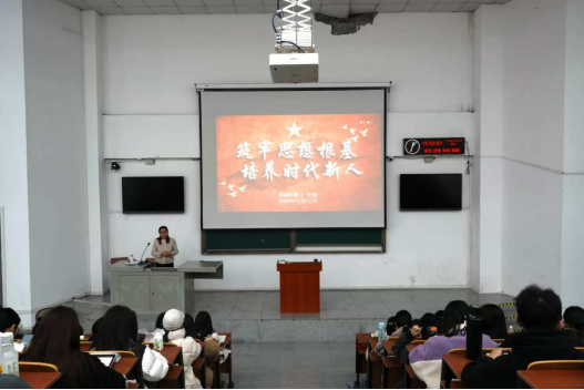 在阐述思想根基的四大支柱时,任倩书记从理论根基、信念之基、道德之基、文化之基四个维度,结合各专业特点与相关案例展开具体讲解,进一步描绘基于专业背景的时代新人画像。最后,她提出筑牢思想根基、成长为时代新人的四条实践路径:深化理论著作学习、加强党史国史教育、投身专业实践与社会服务、对照先进典型开展自我反思,并勉励同学们担当复兴大任、争当时代先锋,在各自专业领域书写无愧时代的青春华章。