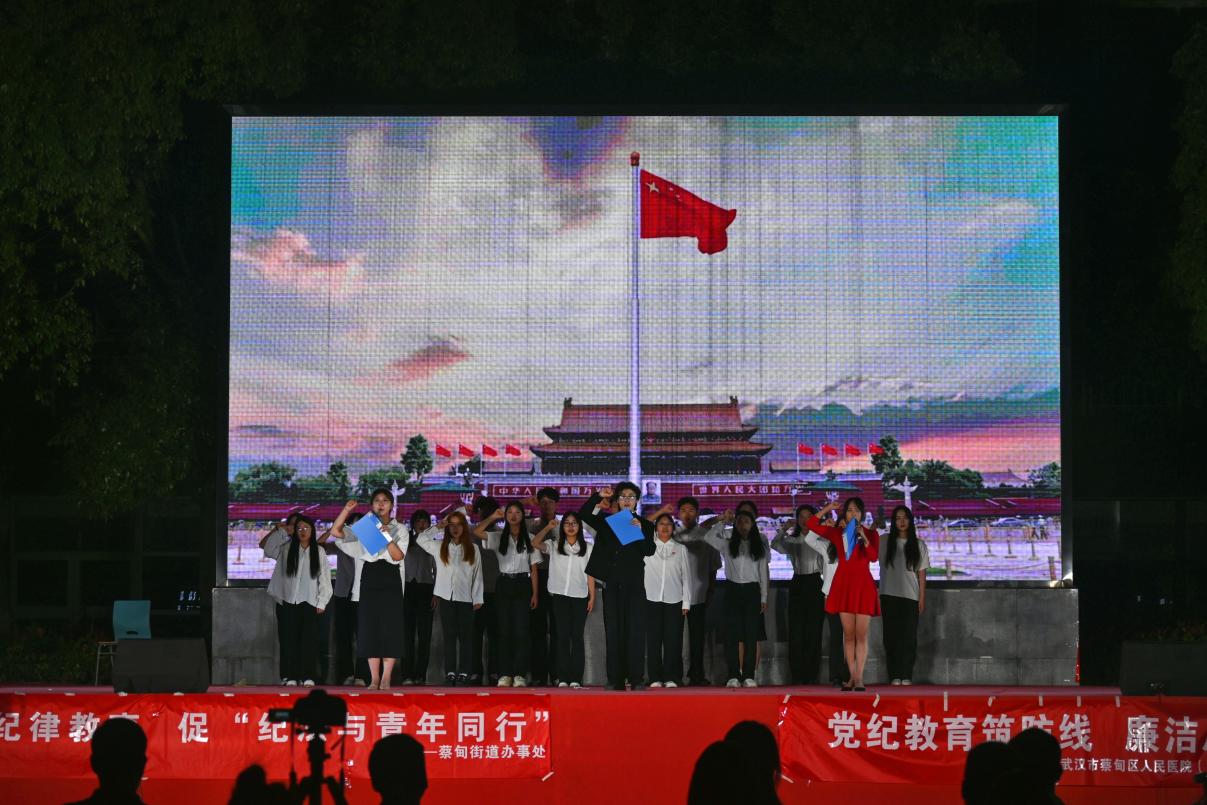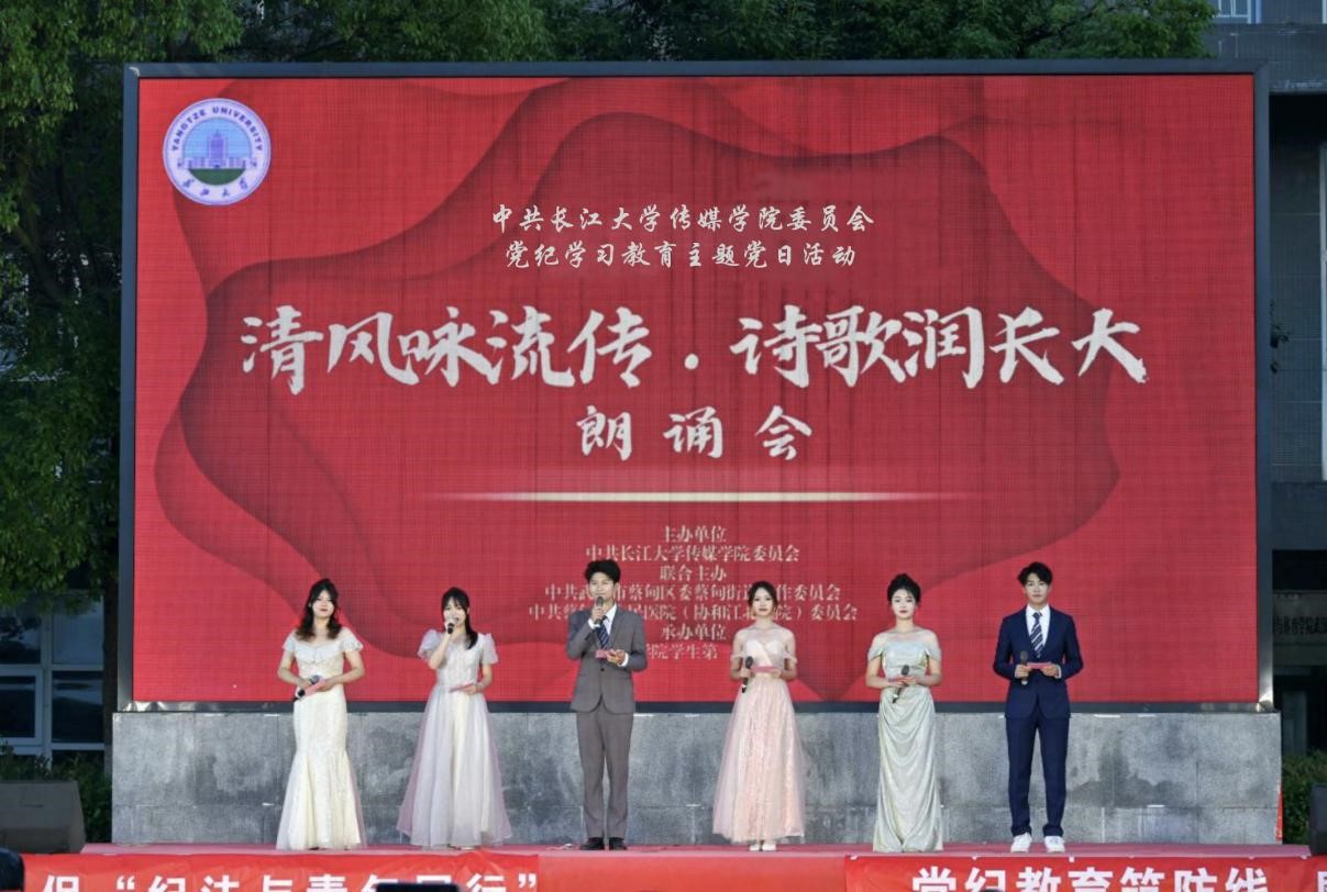 (通讯员:阮欣雨)6月13日晚7时,中共太阳成集团tyc122cc委员会联合中共武汉市蔡甸区委蔡甸街道工作委员会、中共蔡甸区人民医院委员会在122cc太阳成集团官网武汉校区篮球场举办了党纪学习教育主题党日活动——“清风咏流传·诗歌润长大”朗诵会。