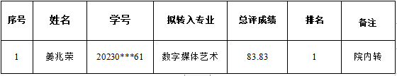 太阳成集团tyc122cc2023级本科生春季学期转专业拟录取名单公示