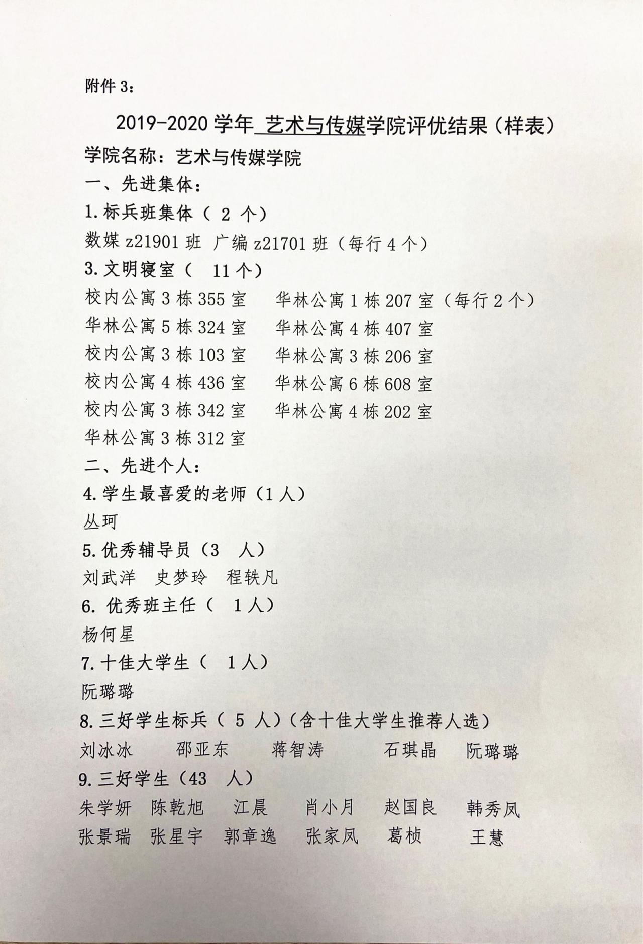 2019—2020学年艺术与太阳成集团tyc122cc评优结果公示