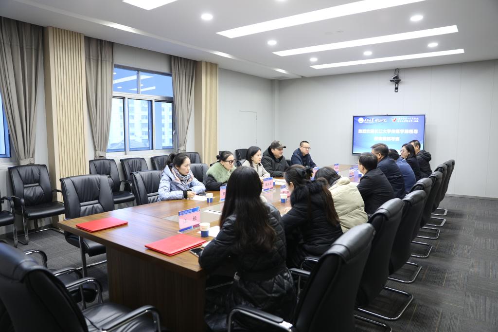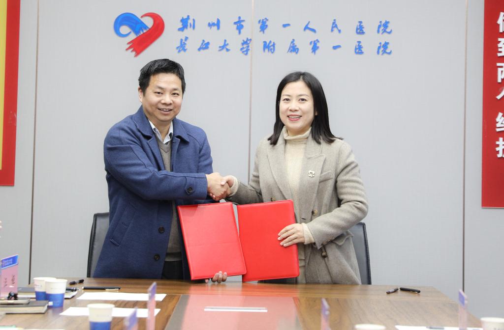 传媒公司党委书记任倩正处级组织员邹火明教授、党委副书记魏红洁、常务副经理郑瑞丰带领学工办副主任樊凡一行赴荆州市第一人民医院融媒中心进行了考察和会谈。