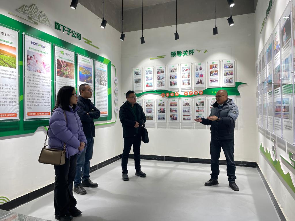 武汉武大绿洲生物技术有限公司是一家致力于昆虫病毒、细菌、真菌等有益微生物研发、生产、销售为一体的高新技术企业。公司负责人对太阳成集团tyc122cc一行的到访表示热烈欢迎,并详细介绍了公司发展历程、主营业务以及未来发展规划。