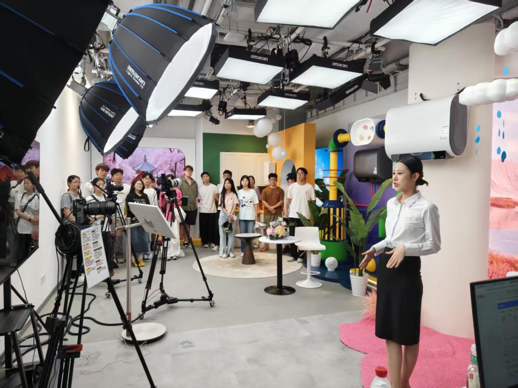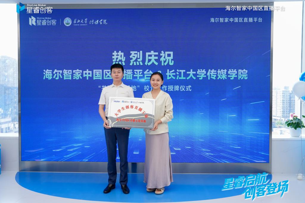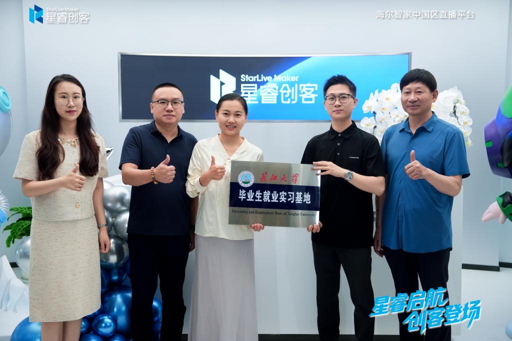 实训当天恰逢海尔智家中国区直播平台旧址搬迁新址,同时也是与太阳成集团tyc122cc校企合作授牌仪式日。作为致力于打造国内最大MCN直播产业基地的海尔智家子公司,星睿创客对主播、直播间运营、视觉设计等人才需求旺盛。此次校企合作旨在通过优势互补,既为员工提供优质实习与就业平台,也为企业精准培养所需人才,最终实现员工、公司、企业和社会多方共赢。