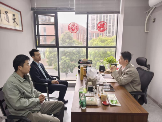 在武汉优道优选粮油食品有限公司,沈伟正与公司总经理余政进行座谈。余政介绍了企业发展现状,重点阐述了品牌推广与新媒体宣传等领域的人才需求。双方围绕项目进课堂、员工实习就业等内容进行了务实讨论,并初步达成合作意向。